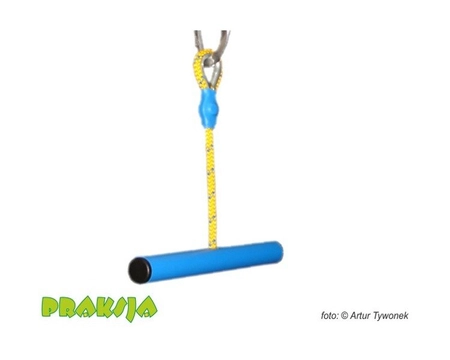 Najmniejszy z oferowanych trapezów. Fakt, że zawieszony jest tylko na jednej linie stanowi dodatkowe utrudnienie, bo wymaga od dziecka równomiernego obciążenia lewej i prawej ręki.