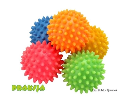 - Kolczata, gumowa piłeczka przeznaczona do masażu, ćwiczeń stymulujących zmysł dotyku czy zwyczajnej zabawy. Żywe kolory, miły w dotyku materiał, z którego została wykona, to bez wątpienia zalety tej piłki.