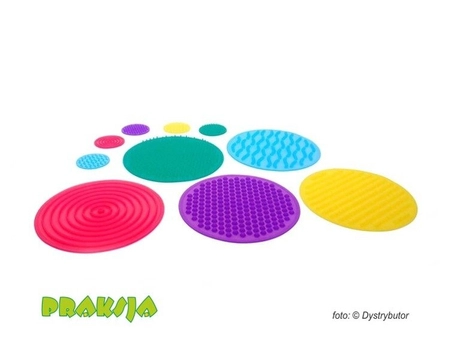 Dzieci mogą dotykać kółek rękoma i stopami. Faktury pobudzają i rozwijają zmysł dotyku zarówno dłoni, jak i stóp. Wzmacniają zdolność do rozpoznawania kształtów oraz opisywania wrażeń zmysłowych.