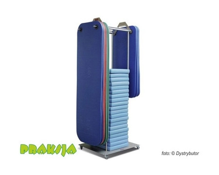- Zaawansowana konstrukcja na podstawie z kółkami służąca do przechowywania dużej ilości mat do ćwiczeń i poduszek do balansowania