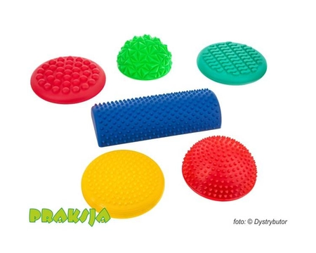 Zestaw 11 elementów o wyraźnych fakturach przeznaczony do ćwiczeń z zakresu integracji sensorycznej. Z elementów tych można dowolnie tworzyć tory przeszkód, ścieżki sensoryczne lub równoważne. Oferowany zestaw przeznaczony jest do ćwiczeń równowagi, korekcji wad postawy oraz masażu stóp. Bardzo dobrze sprawdza się podczas zabawy z dziećmi, jest uatrakcyjnieniem zajęć grupowych. Wypustki pobudzają receptory czuciowe i poprawiają ukrwienie.