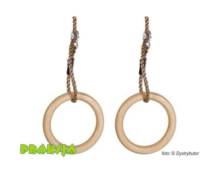 - Drewniane, podwieszana, kółka gimnastyczne o regulowanej długości linek.