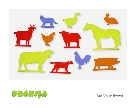 zestaw tego typu można traktować jako pomoc dydaktyczną. Jego zastosowanie obejmuje wszelkiego rodzaju zajęcia indywidualne o charakterze edukacyjnym lub terapeutycznym. Wycięte z plexi sylwetki zwierząt gospodarskich w równym stopniu można wykorzystać do zajęć z zakresu nauczania o środowisku, ochronie przyrody, ekologii jak i wykorzystać je jako narzędzie do pracy w gabinecie logopedy, pedagoga czy terapeuty. Łatwiej wejść w interakcje z dzieckiem posługując się atrakcyjnym wizualnie narzędziem.