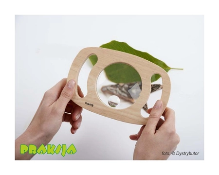 - Solidna lupa dla dzieci z drewnianą ramką i uchwytami Tickit®, wyposażona w soczewkę o 2-krotnym i 3-krotnym powiększeniu, umożliwia bezpieczne odkrywanie szczegółów otaczającego świata już od najmłodszych lat.