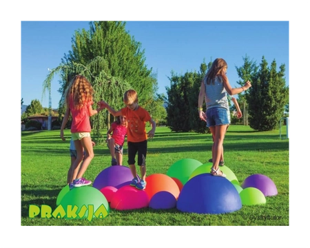 Olbrzymie półkule równoważne Amaya® (zestaw 4 sztuki) to funkcjonalne i efektowne narzędzie wspierające rozwój koordynacji ruchowej, równowagi i integracji sensorycznej u dzieci. Ze względu na swój rozmiar i atrakcyjne kolory, półkule świetnie angażują dzieci do aktywności fizycznej na świeżym powietrzu oraz w salach gimnastycznych. Idealnie sprawdzą się jako element wyposażenia przedszkola, szkoły podstawowej lub placu zabaw.